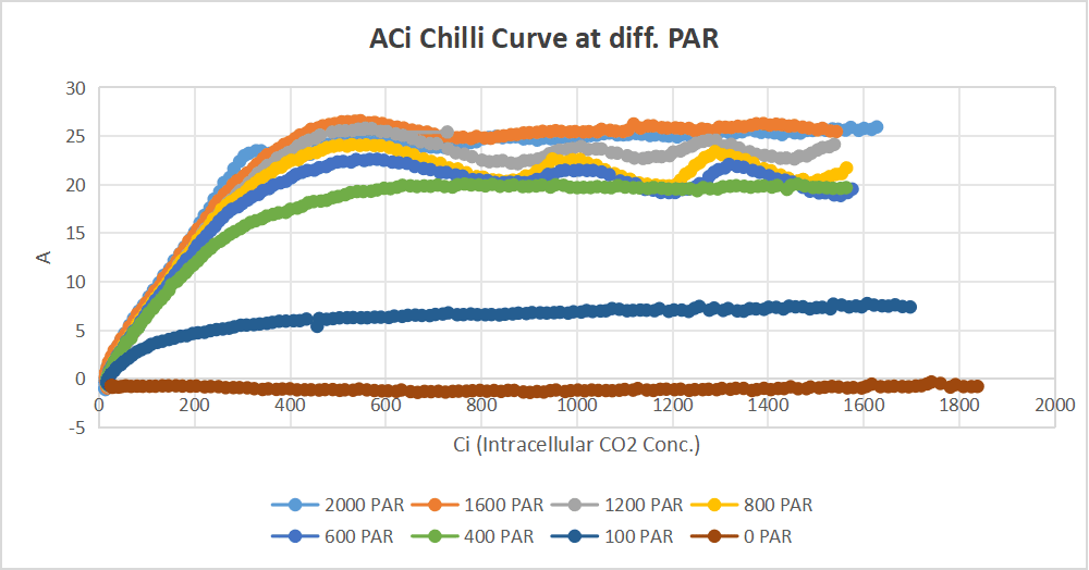 1. ACI curve (photosynthesis vs conc. CO2 in leaf)