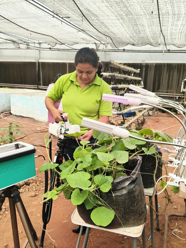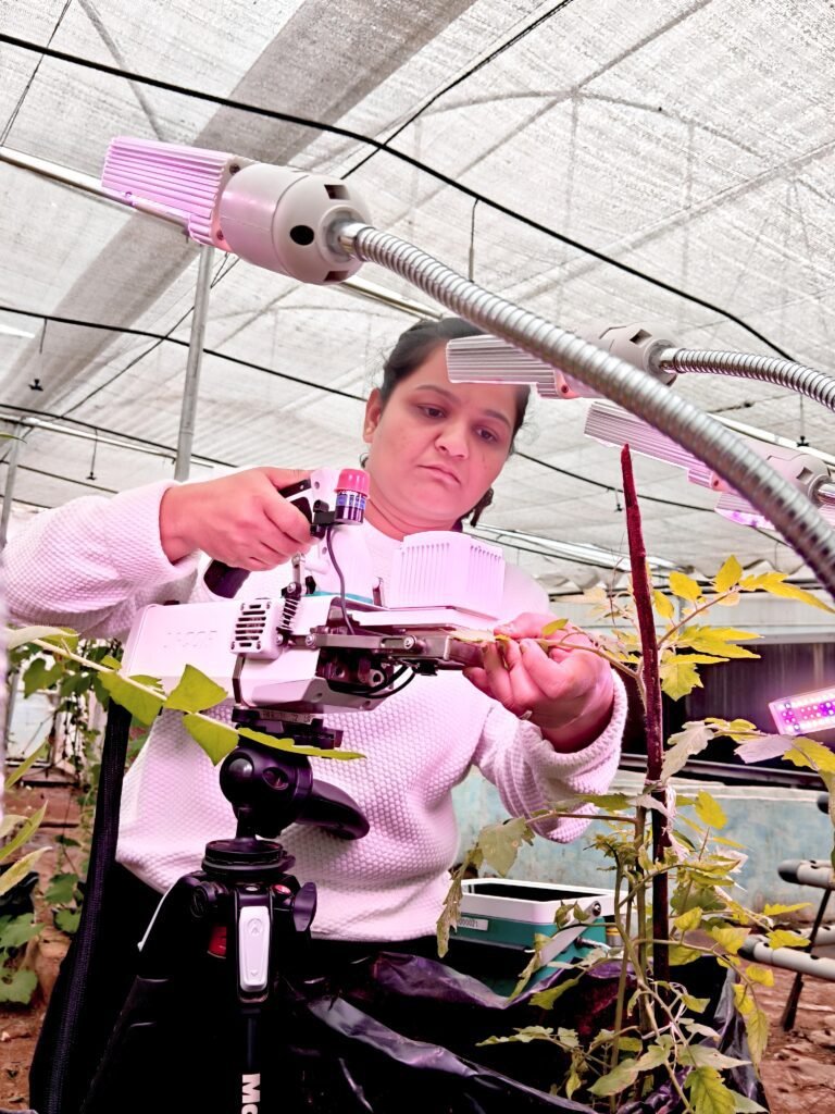 I am training Jyostna to use the LI-COR machine for collecting photosynthesis readings from plants. Before allowing her to handle the machine, I provided thorough training on the basics of its operation. After two days of hands-on practice, I introduced her to the scientific principles behind the machine.