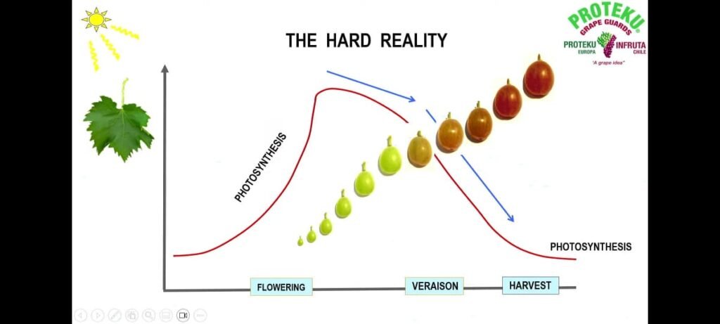 Key takeaway : Energy production through photosynthesis naturally declines during berry ripening, which can limit fruit development and quality.