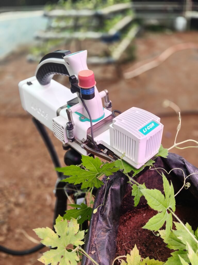 We transferred the plants from the polyhouse to the open field. Due to low light conditions in the polyhouse during monsoon, we decided to keep the plants outside in a less shaded area and pause LI-COR measurements for a week. For the actual measurements, we will use grow lights and bring the plants back inside the polyhouse to protect them from rain.