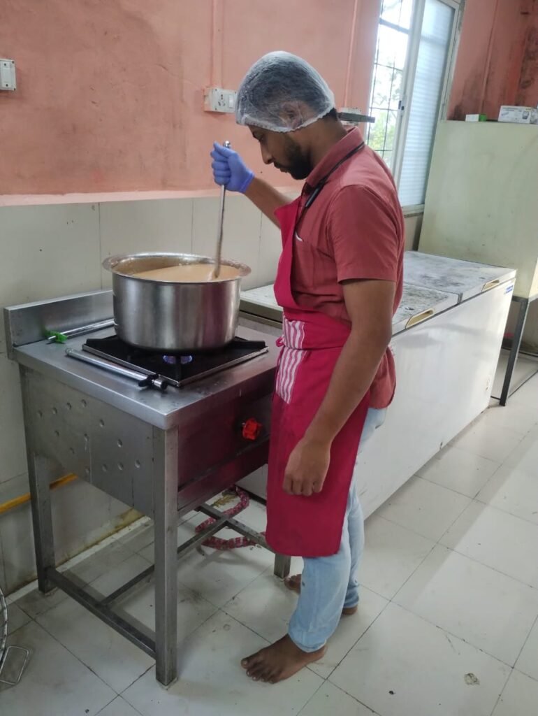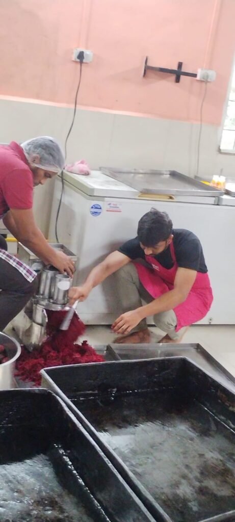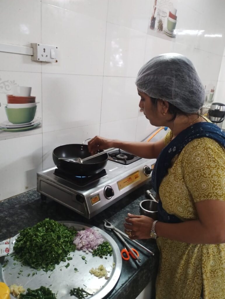 Bhakti Ma’am prepared a recipe and I helped her. Together, we made Methi Bhaji and Mirchi Thecha, and then dried them in the electric dryer.