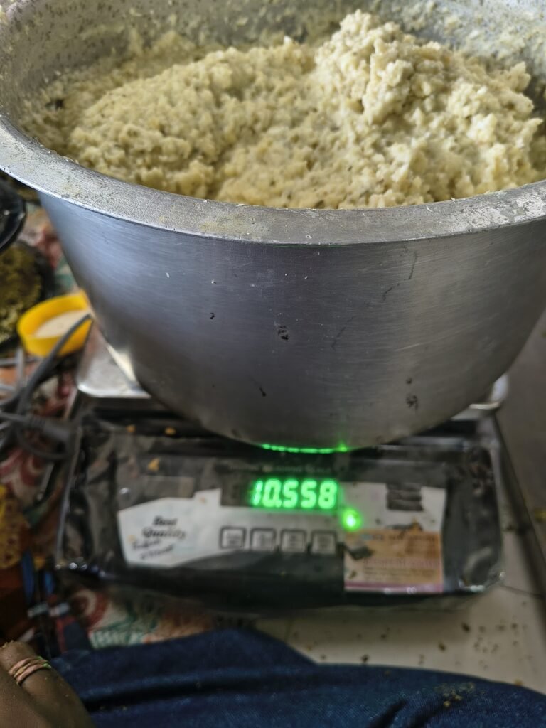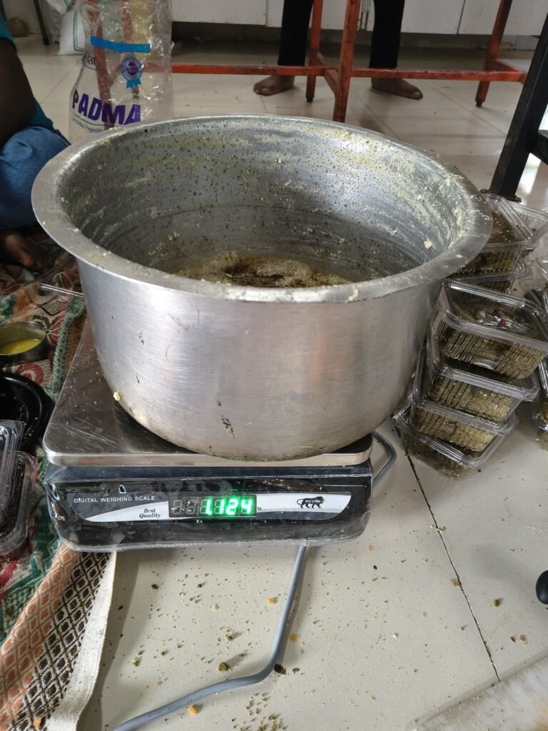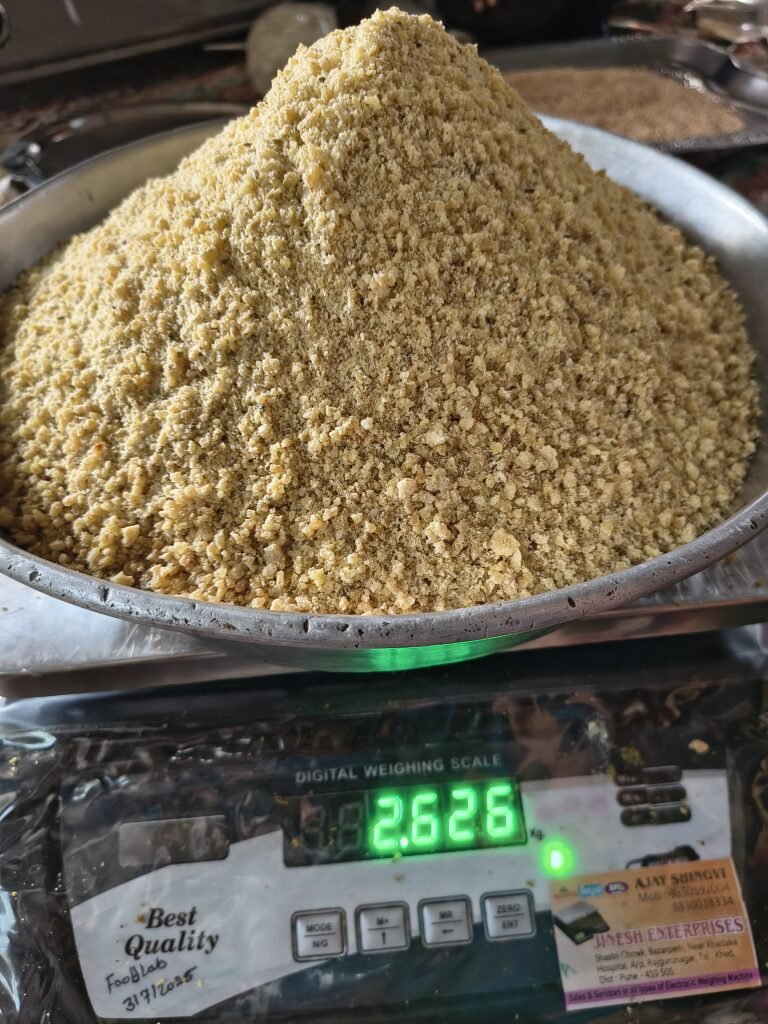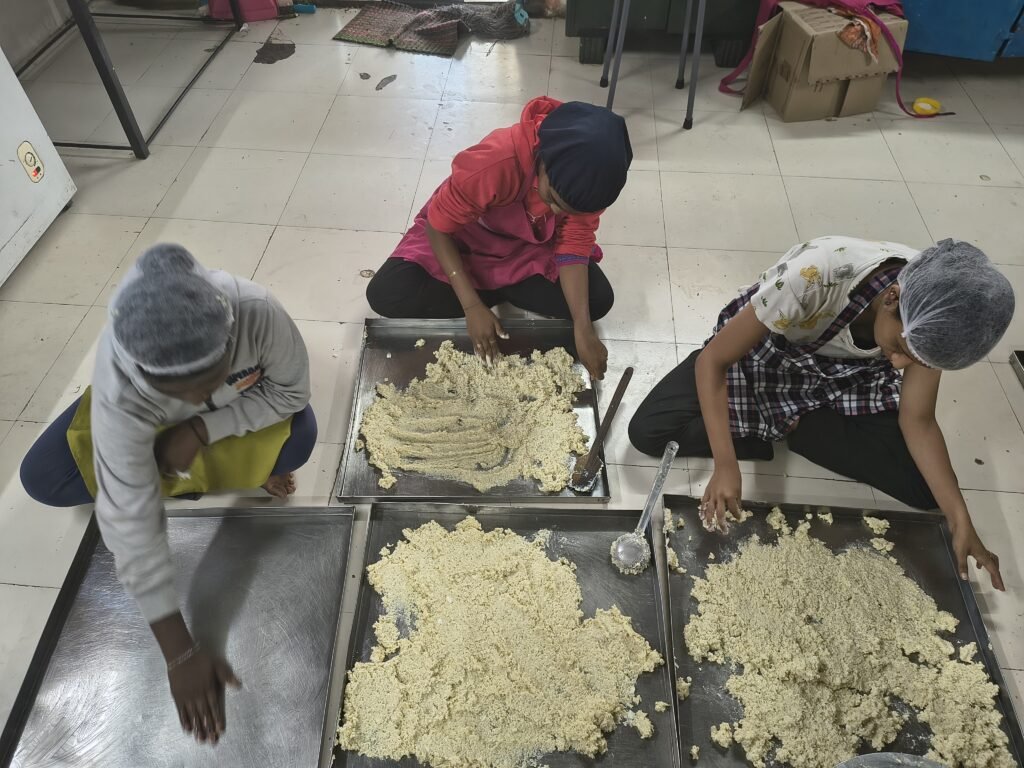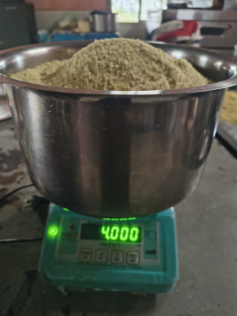 Drying-Spread the cooked mixture thinly on clean trays greased with ghee.Dry using a food dehydrator or electric tray dryer ~60 °C until moisture is below 10%.Avoid over-drying or burning.Premix Assembly-Grind or blend dried product to desired texture (coarse or fine).Pack in moisture-proof, airtight pouches.