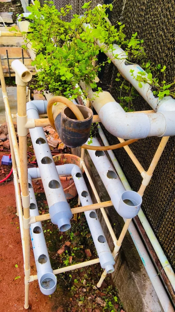 In the second discussion with Dixit Sir and Prasad Sir, it was decided to prepare different hydroponic systems and conduct trials on them. Accordingly, the first system we prepared was the NFT hydroponic system. I prepared this NFT hydroponic system using some scrap materials.