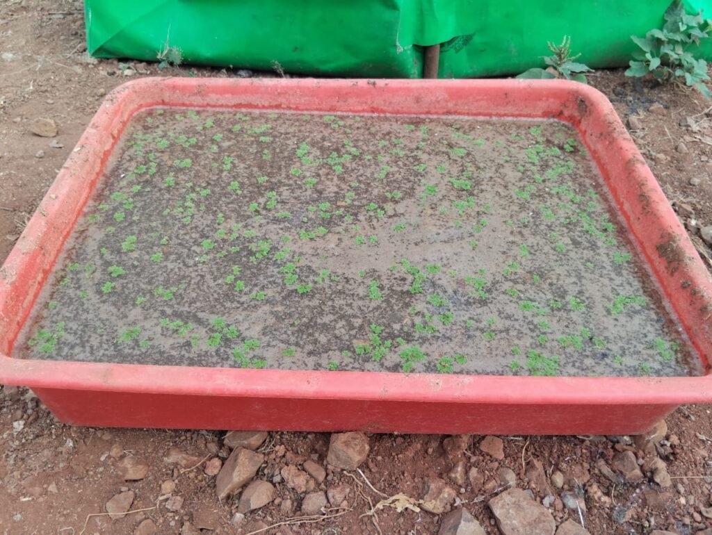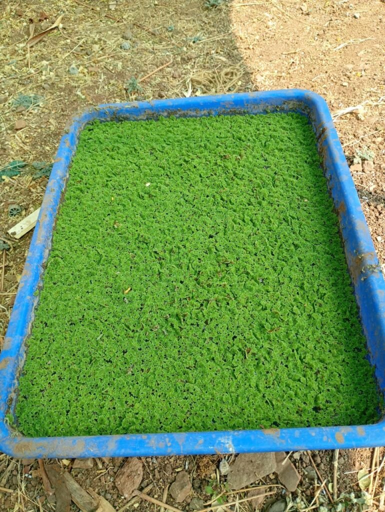 दीक्षित सरांसोबत चर्चा केली त्यात त्यांनी अझोला च्या ट्रायल सुरुवातीला ४ ट्रे मध्ये घ्यायला सांगितली .