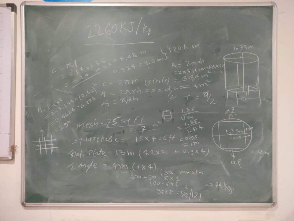 Prasad Sir assigned me the task of calculating the capacity of the storage unit I measured yesterday. Using the given dimensions, I applied the volume formula for a cylinder and multiplied by the bulk density of onions.
