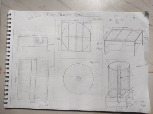 The cylindrical onion storage structure was completed. Vaibhav began fabricating a square structure.