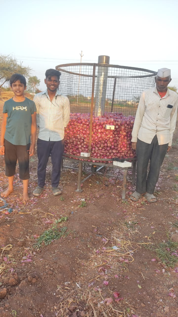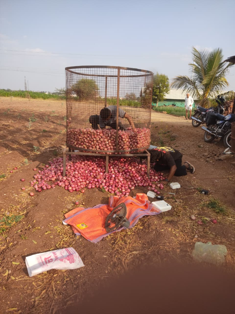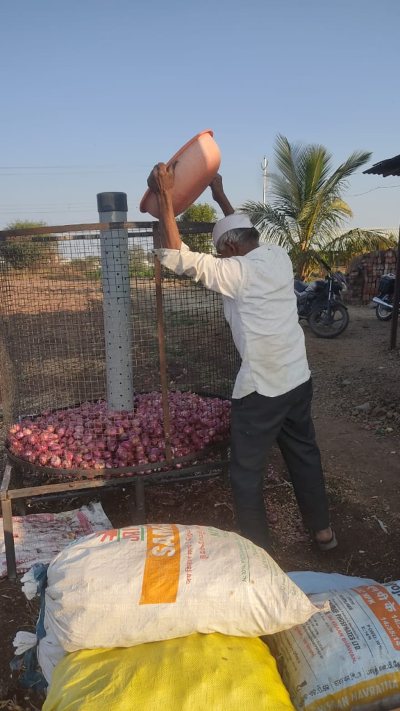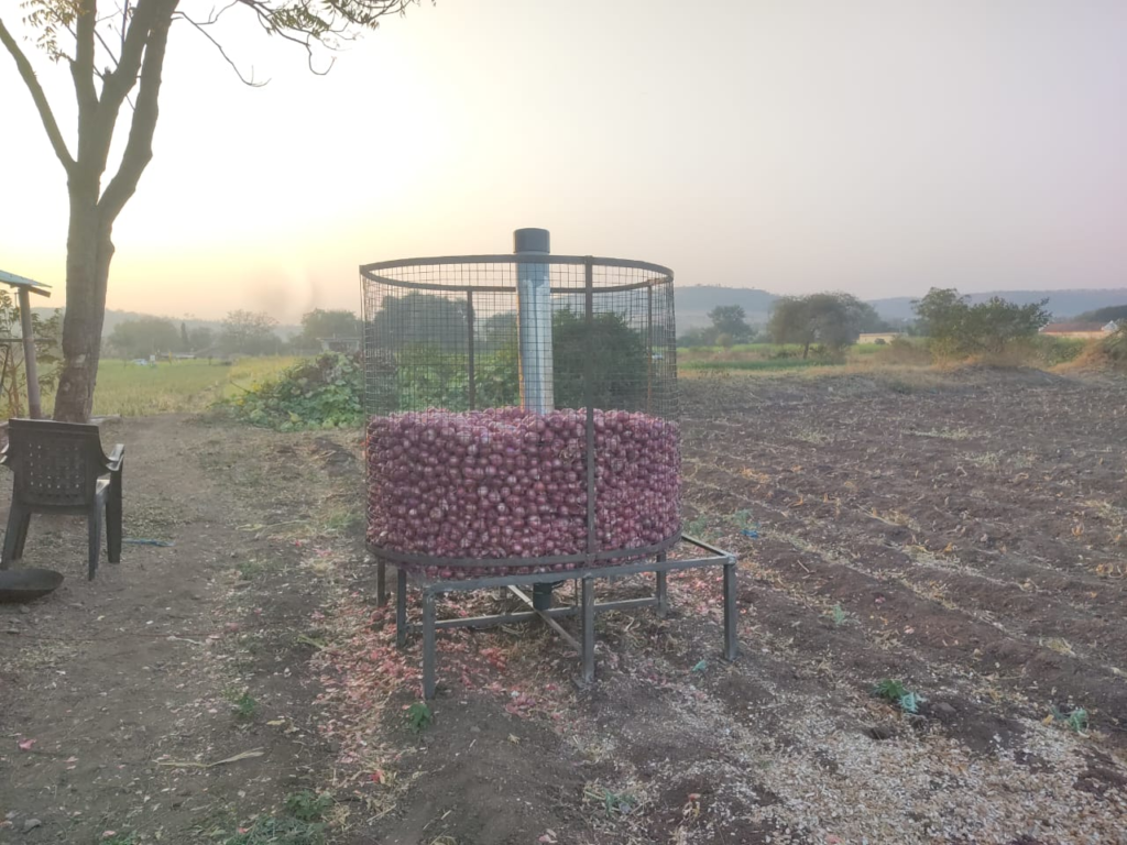 With the help of Ganesh Pinggale Sir, I got in touch with an administrative officer at the ICAR – Directorate of Onion and Garlic Research. I scheduled a meeting for the 8th of September. Visited one of the farmers who stored onions in a circular iron net structure.