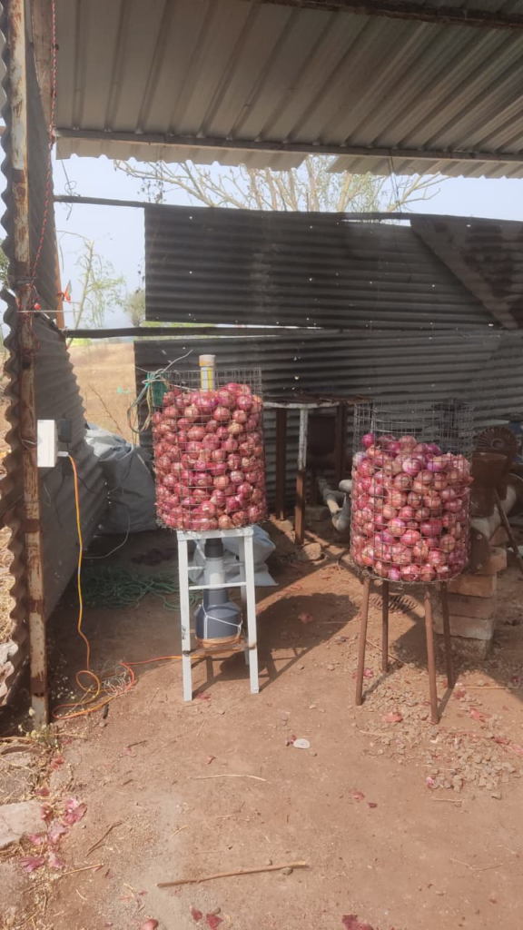 Installed the two onion storage units in the Agriculture Department of Vigyan Ashram.