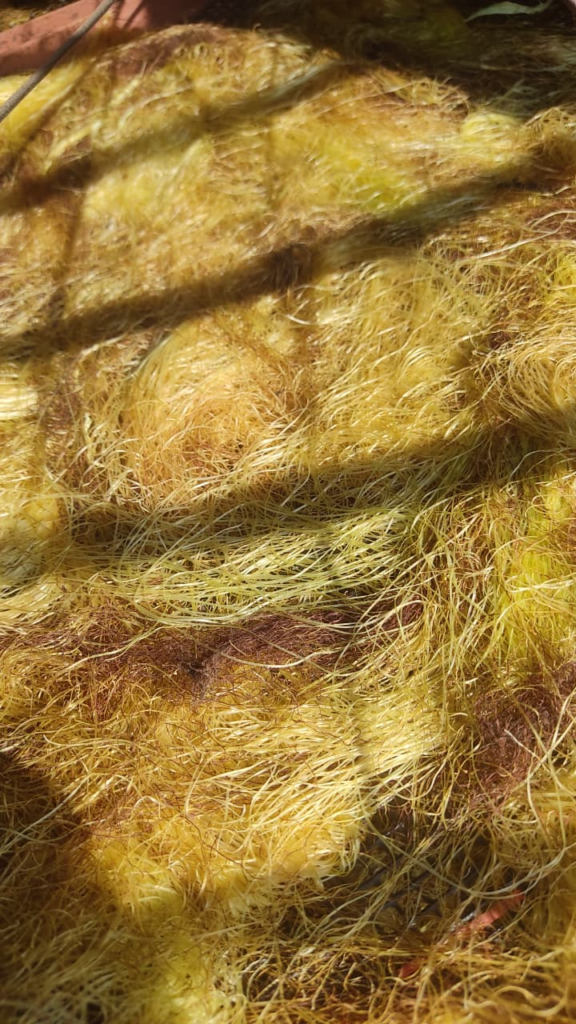 Continued the drying process of corn silk from 12pm to 4 pm. This time, corn silk dried from 10.730kg to 8.300kg in a shaded environment (dome shade). After this, the corn silk has been transferred to the inclined dryer for further drying in the evening at 4.30pm with 8.300kg initial weight.