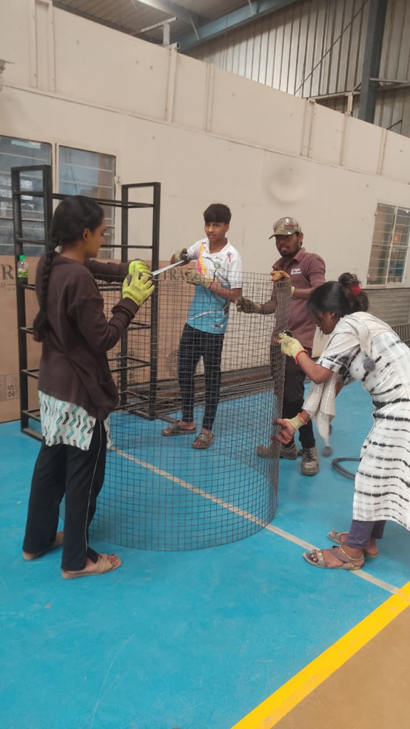 The cylindrical structure made by the DBRT students is good, but as Vaibhav has arrived today, we gave him a 5-structure contract of INR 12,000.