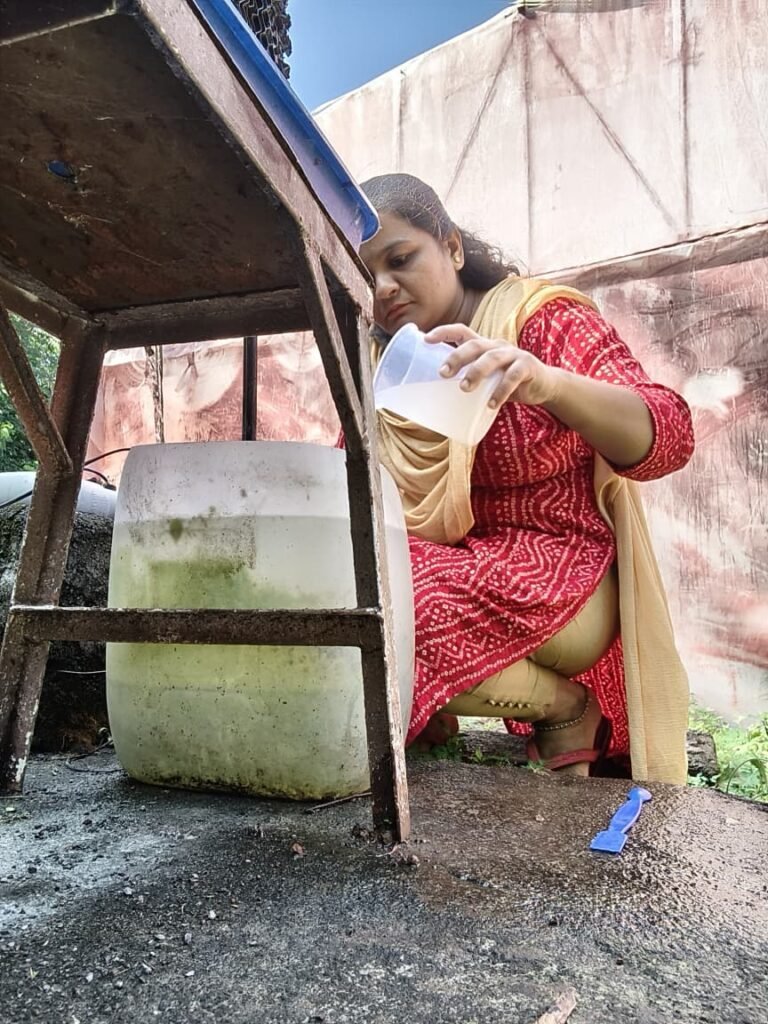 Bleaching powder was dissolved and added to Bucket A (Treated), while Bucket B remain untreated.