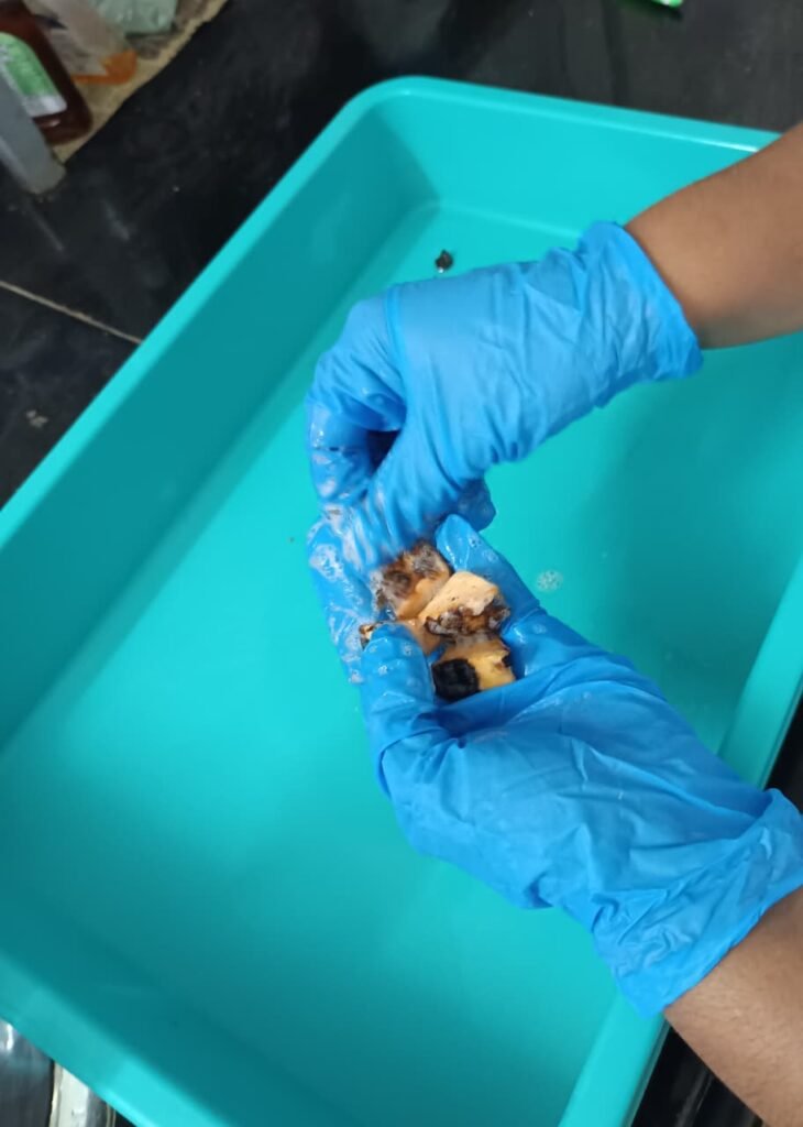 I discussed the contamination issue of Suran with Dr. Dixit. He suggested preparing a 0.25% sodium hypochlorite solution and soaking the Suran in it for 30 minutes. After that, surface sterilization should be done, and the explants should be inoculated into MS medium.