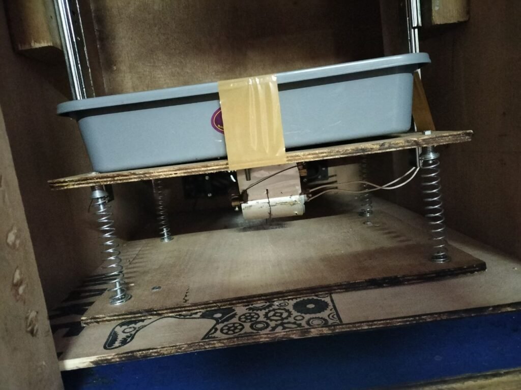 We can use a rotary motor with eccentric mass, scotch-yoke or cam + follower mechanism, or a linear solenoid, either way we need to guide the system on rails.