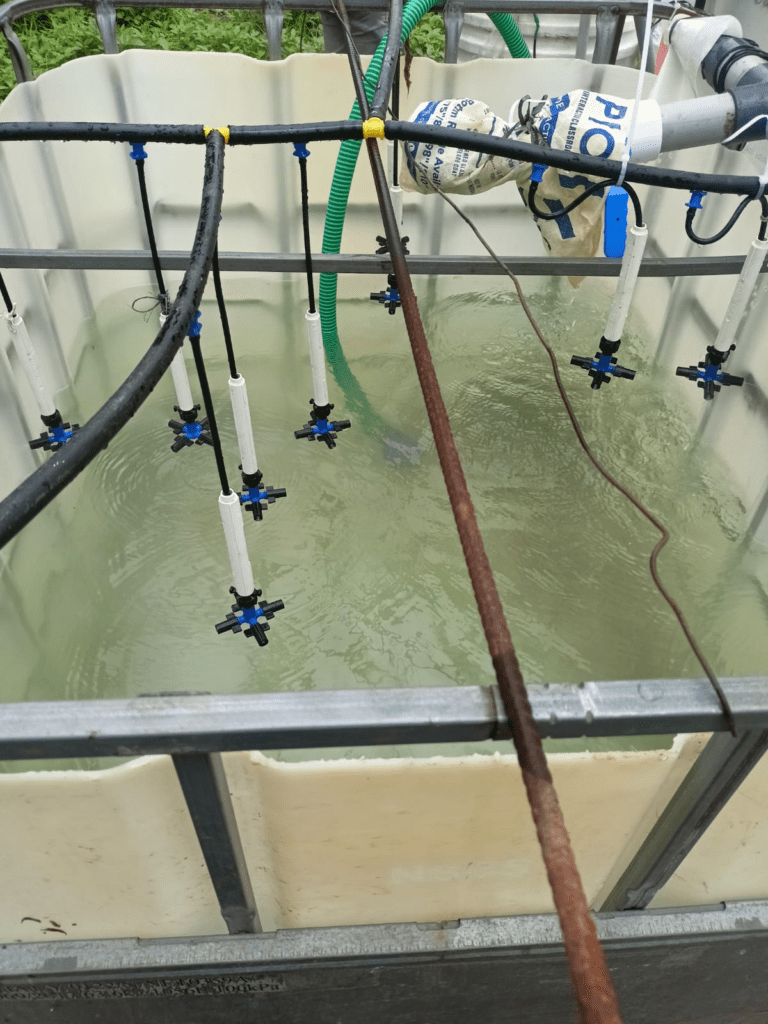 - A 1000-liter IBC tank was used for the experiment.
