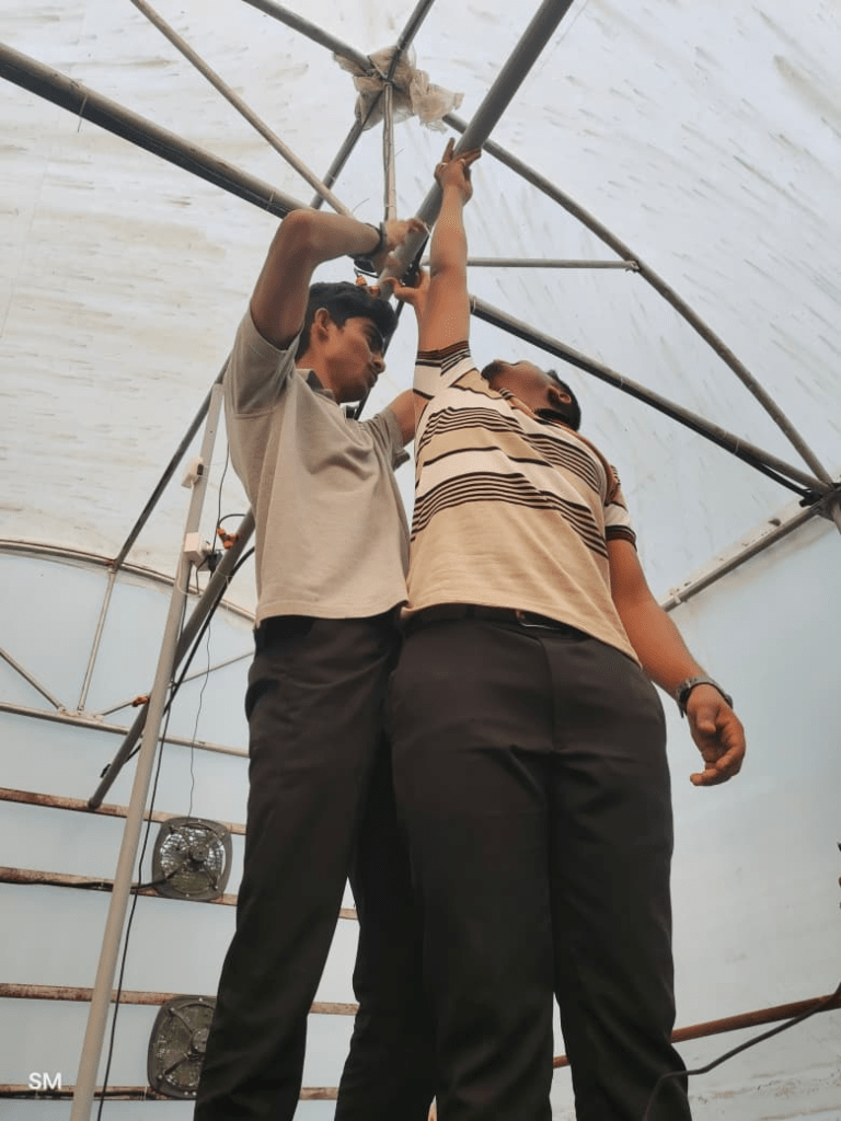 After completing the modifications, we successfully operated the turbo foggers with the required pressures. The foggers produced a fine, uniform mist inside the polyhouse. Later, Dixit Sir and Ranjeet Sir also visited the site to observe the working of the turbo fogger system.