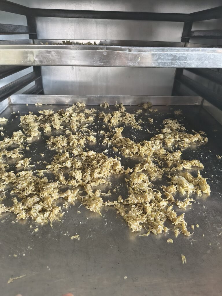 Drying :To make a premix, spread the cooked dudhi-milk mixture thinly and dehydrate until dry. Temperature 48°C.