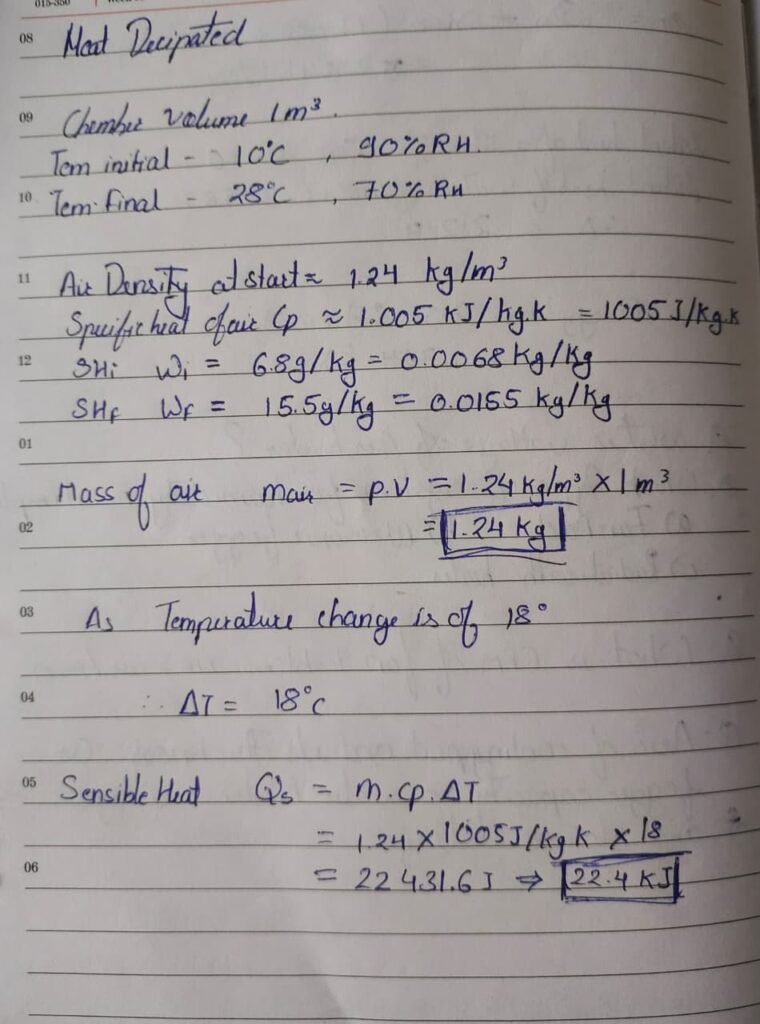 - Heat required to warm chamber air: ~21.4 kJ