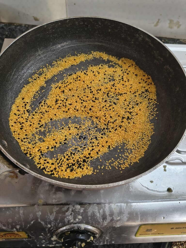 step 1- Dry roast the mohari dal & kalounji seeds in a pan.