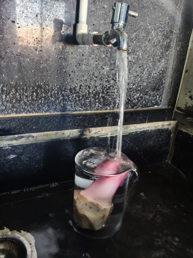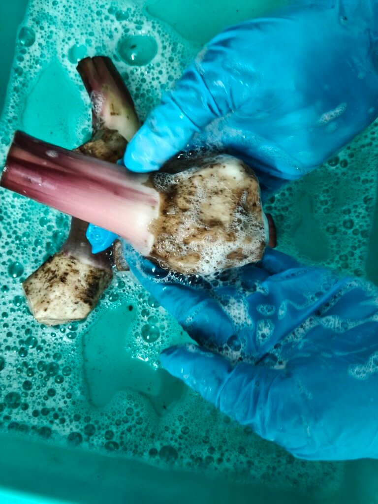 6. Wear glove hand and wash the plant material for 5 minutes.