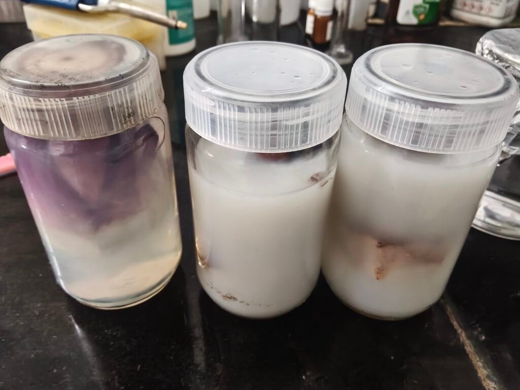 Observation : This week, plant tissue culture of banana was carried out in three bottles, and the bottles are currently under observation.