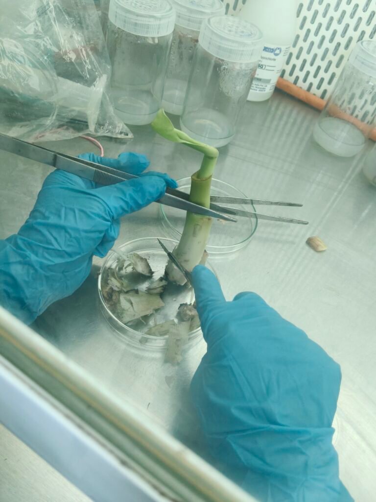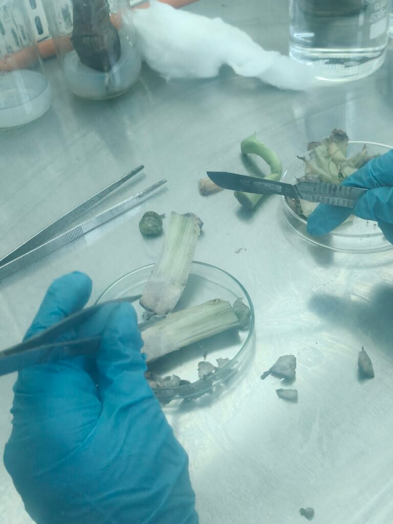 The primary objective of this project is to achieve 100% reduction in microbial contamination in plant tissue culture. The work is being continued with the aim of successfully producing 100 banana plants under sterile tissue culture conditions.