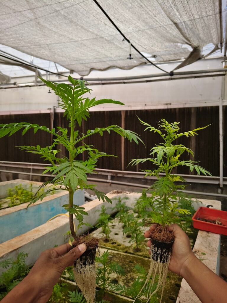 - To standardize the nutrient solution (EC and pH) requirements for optimal vegetative and flowering growth of marigold under DWC system.