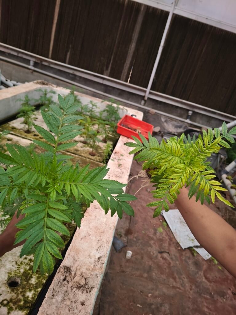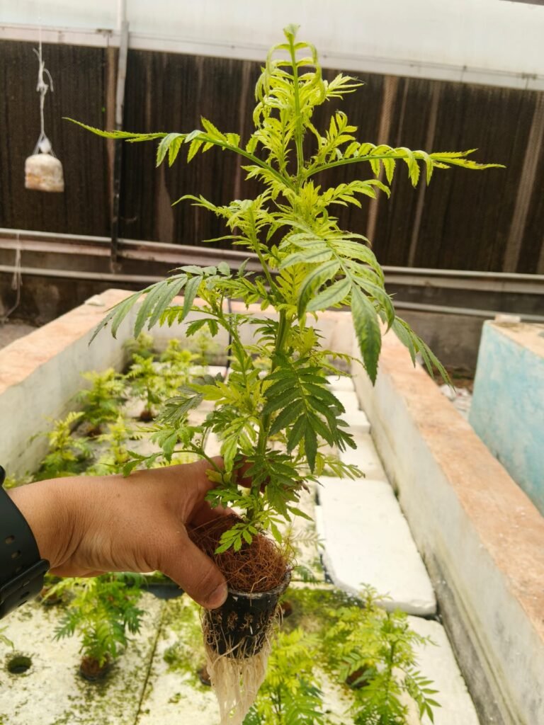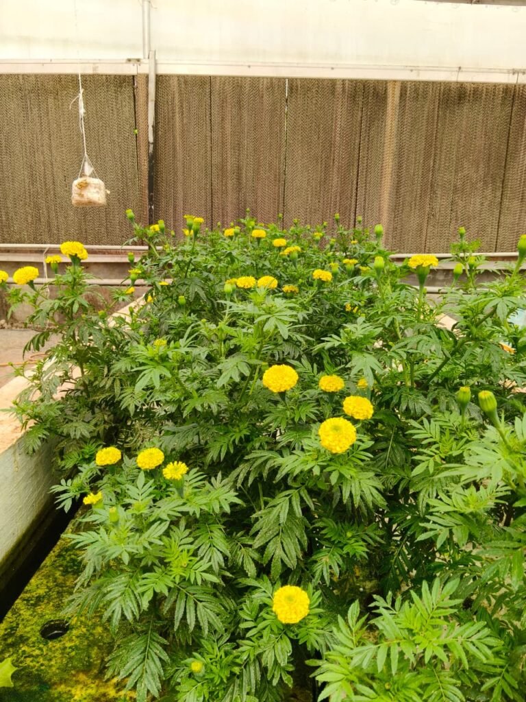 The marigold plants were successfully grown in the DWC hydroponic system, showing excellent vegetative growth and successful flowering. The plants entered the flowering stage smoothly and produced healthy, well-developed flowers with good color and quality.