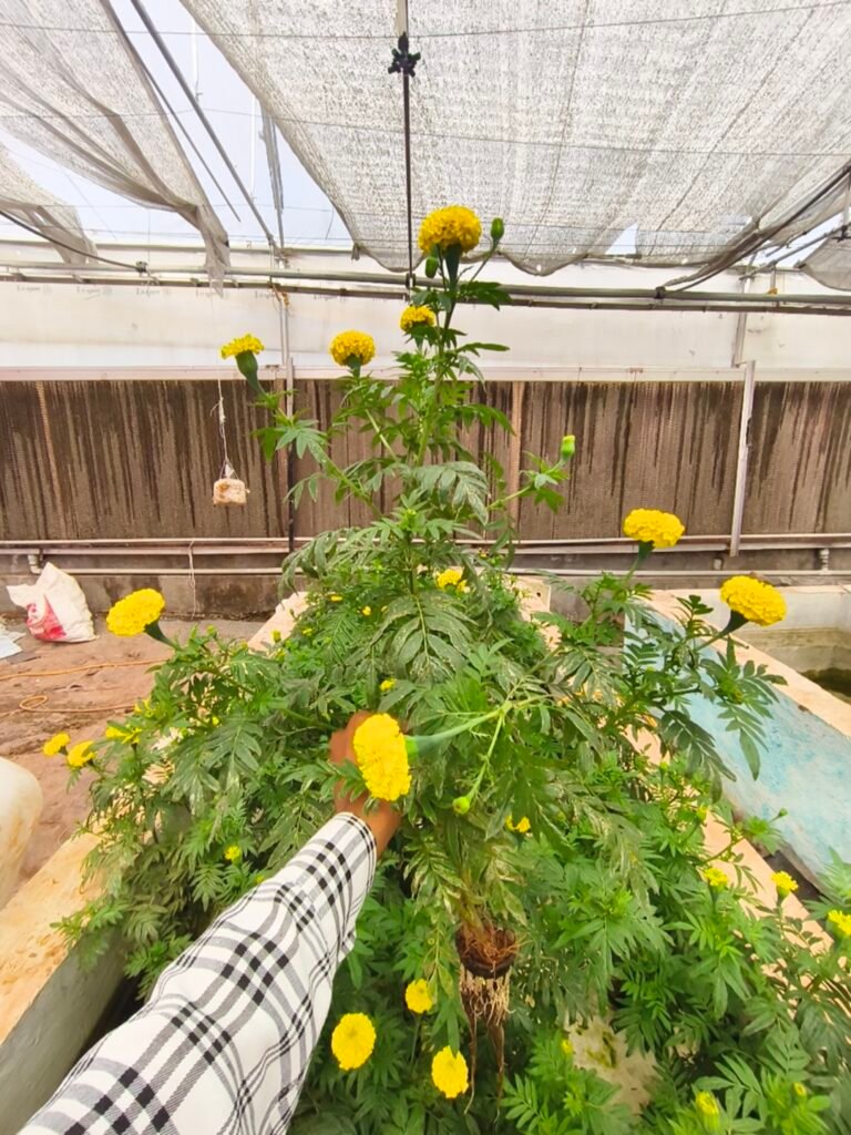 A discussion was held with Dixit Sir, and it was decided to conduct a trial of marigold in the DWC system. Accordingly, we transplanted marigold seedlings of yellow and orange colors into the DWC tank.
