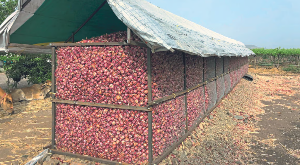 The need for an onion storage unit arises because onions are highly sensitive to environmental conditions like temperature, humidity, and air circulation. After harvesting, onions continue to respire and release moisture, which can lead to sprouting, rotting, fungal growth, and weight loss if not stored properly. Traditional storage methods often fail to maintain the right conditions, resulting in significant post-harvest losses and reduced market value for farmers. A well-designed onion storage unit helps in maintaining a controlled environment with proper ventilation, allowing excess moisture and heat to escape while keeping the onions dry and cool. This extends the shelf life of onions, reduces spoilage, and allows farmers to store produce for longer periods and sell when market prices are favorable.